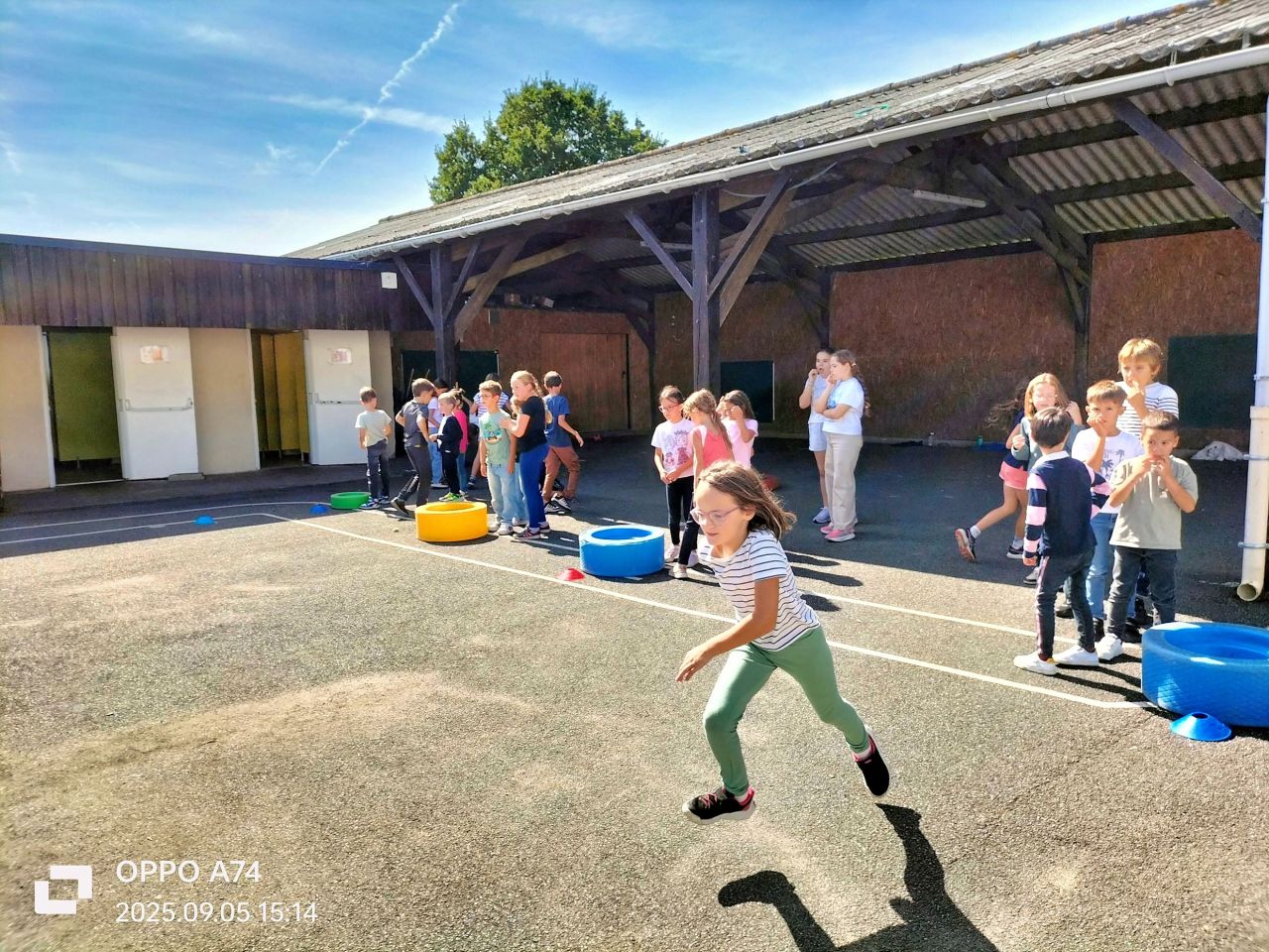 Pendant la première semaine de septembre, tous les élèves des classes élémentaires se sont retrouvés pour une rentrée sportive. Ils ont pu ainsi faire connaissance avec les élèves des autres classes, et surtout accueillir les nouveaux élèves ! Un bel après-midi !