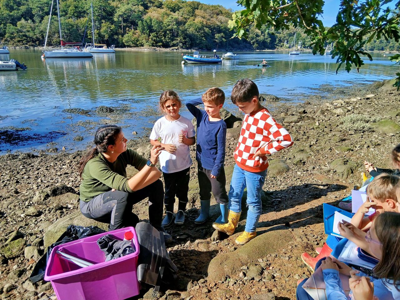 Puis les élèves répartis en groupe ont eu pour mission de partir à la recherche d'un trésor, différent pour chaque équipe: une algue verte, un...